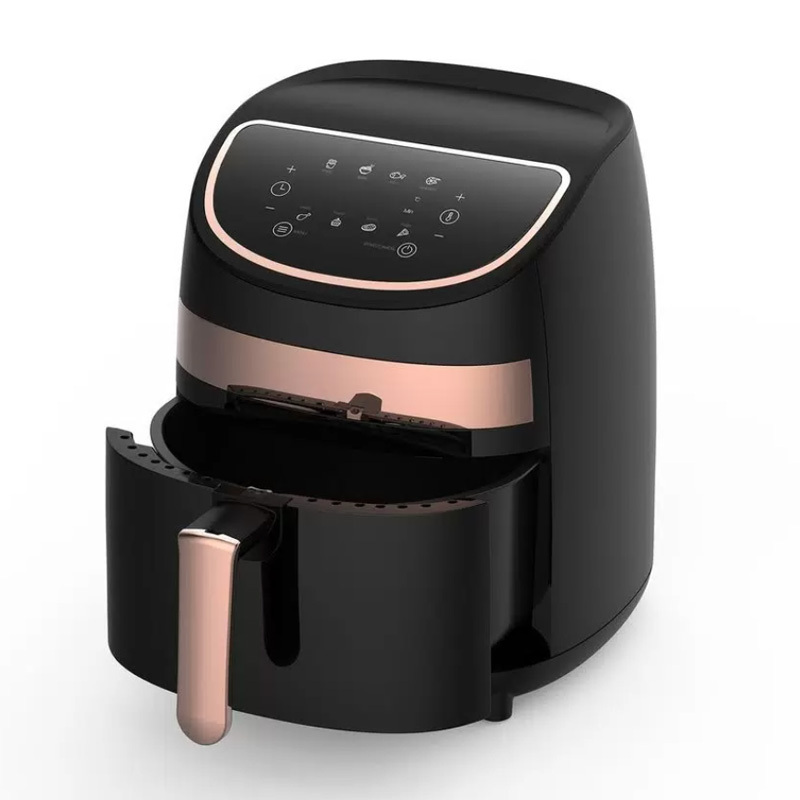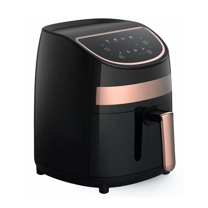 Аэрогриль deerma Air Fryer DEM-KZ100 – компактный кухонный прибор с элегантным черно-золотистым дизайном, за счет которого он будет хорошо смотреться в интерьере любой кухни. Помимо привлекательного внешнего вида эта модель может похвастаться надежной конструкцией и обширным функционалом, за счет которого в ней можно будет готовить разнообразные блюда. Температура нагрева регулируется в диапазоне от 80 до 200 градусов, что позволит точно следовать рецептуре приготовления. Емкость имеет внушительный объем 3 литра, что обеспечивает возможность приготовления нескольких порций блюд за раз.