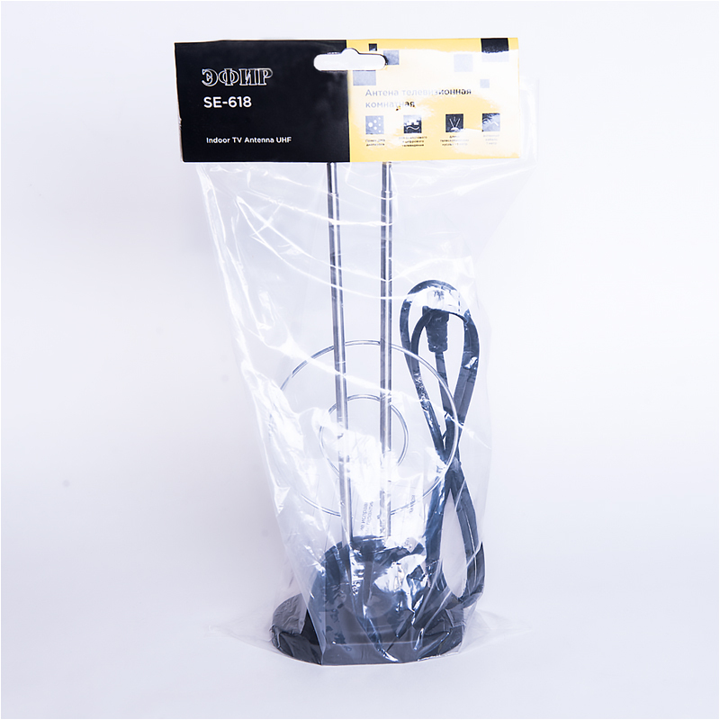 В комплектацию входит: антенна «Эфир» SE-618, гарантийный талон, упаковка:пакет. Товар сертифицирован и имеет гарантию 6 месяцев.
