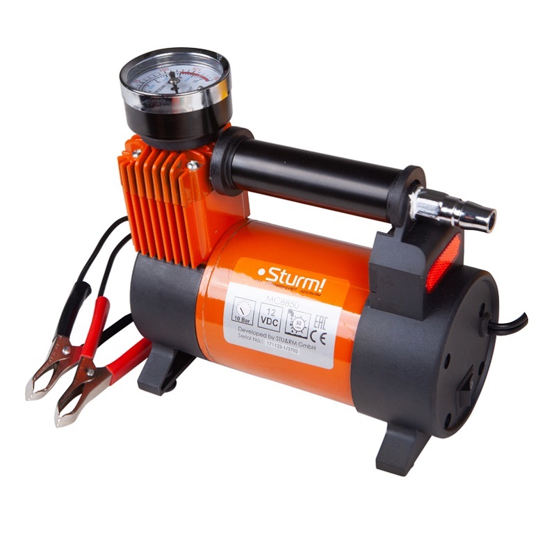 Благодаря металлическому цилиндру с ребристым радиатором охлаждения, стальному поршню и производительному двигателю обеспечивается более продолжительная работа компрессора, от 10 до 30 минут без перерыва, что позволяет накачивать изделия большого размера.
