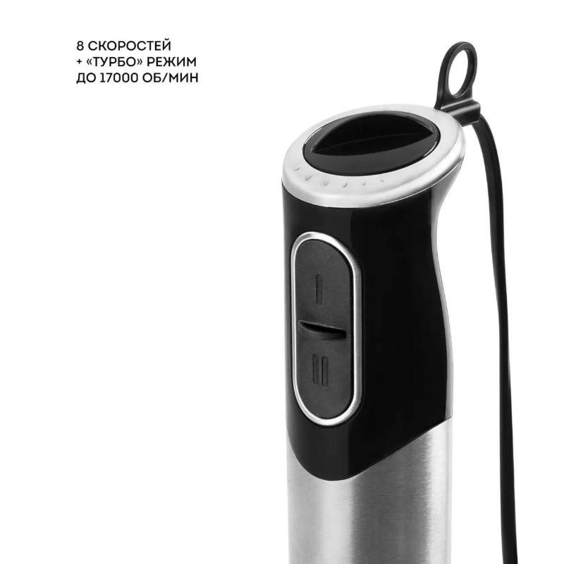 Плавная регулировка скорости позволяет измельчать или взбивать различные по плотности продукты и подбирать необходимую скорость в соответствии с рецептом.