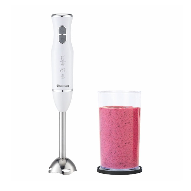 Блендерный набор, 600 Вт, мощный и тихий DC мотор, 2 скорости работы, лезвия из нержавеющей стали стали, погружная часть блендера из нержавеющей стали,градуированный стакан (0,6 л) с силиконовой крышкой-подставкой.