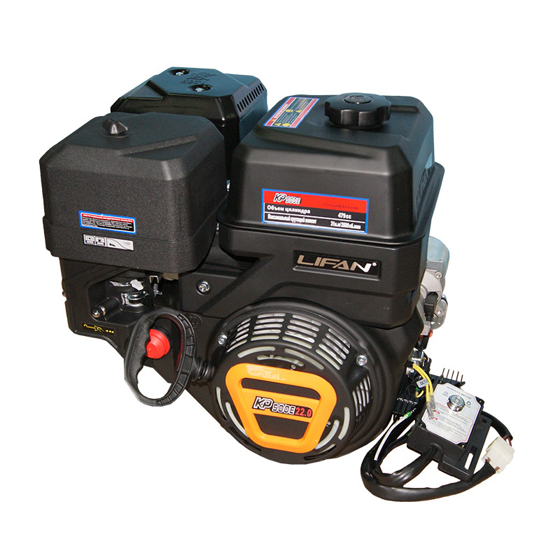 Двигатель LIFAN 22 л. с. KP 500E оснащен катушкой освещения 12В 18А 216Вт, что позволяет использовать его для освещения и работы с электроинструментом.