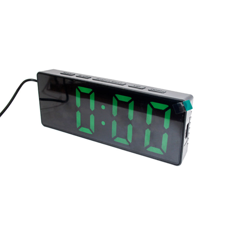 Часы настольные электронные 3*R03 USB зеленый. 12/24 - часовой режим; Часы имеют функции будильника и термометра; 2 уровня яркости, автоматически понижает яркость в ночное время; Работают от батареек и от сети.Дополнительно: Материал: пластик, стекло; Размеры 15 х 7 см