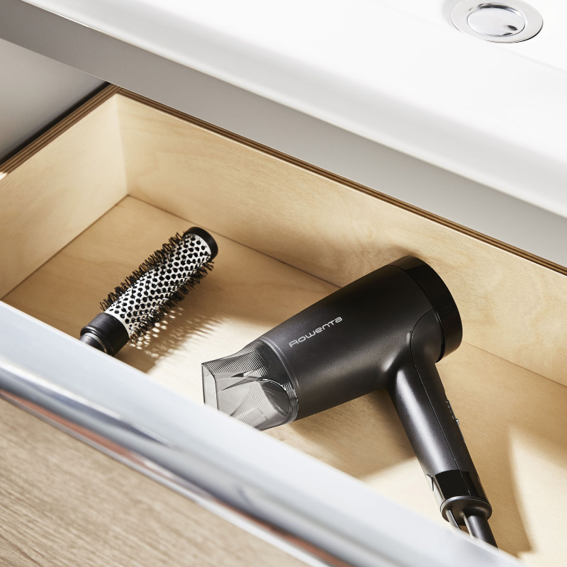 Фен Rowenta Express Style CV1803F выполнен в черном цвете с серыми вставками. Тип мотора DC, то есть он склонен к перегреву и поэтому подойдет только для домашнего использования. В комплекте есть насадка-концентратор, что позволит вам делать сложные укладки локонов и прядей.
