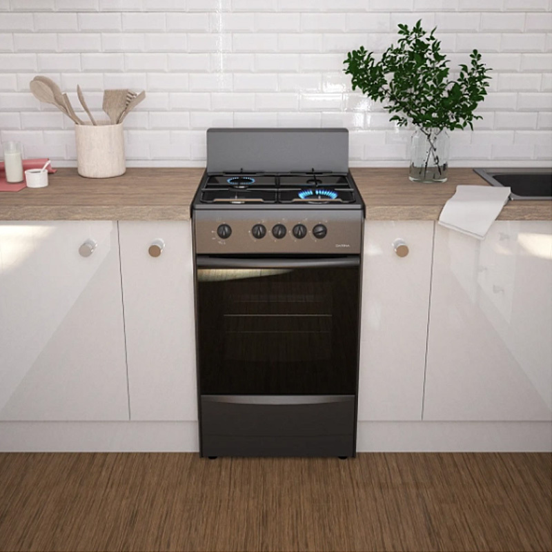 Газовая плита DARINA S GM 441 001 At выполнена в цвете антрацит с поворотными ручками управления. Плита оснащена фиксированным положением «малое пламя». Размер плиты – 50x51x85.
