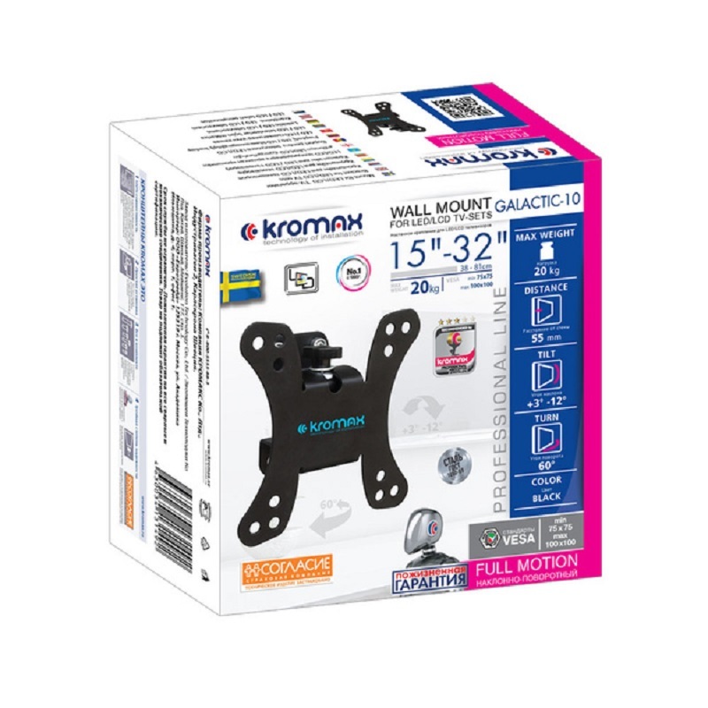 Легкий монтаж при помощи съемной монтажной пластины, Надежная стальная конструкция, Универсальный, телевизор на кронштейне можно наклонить и повернуть, Регулировка угла наклона без использования инструментов