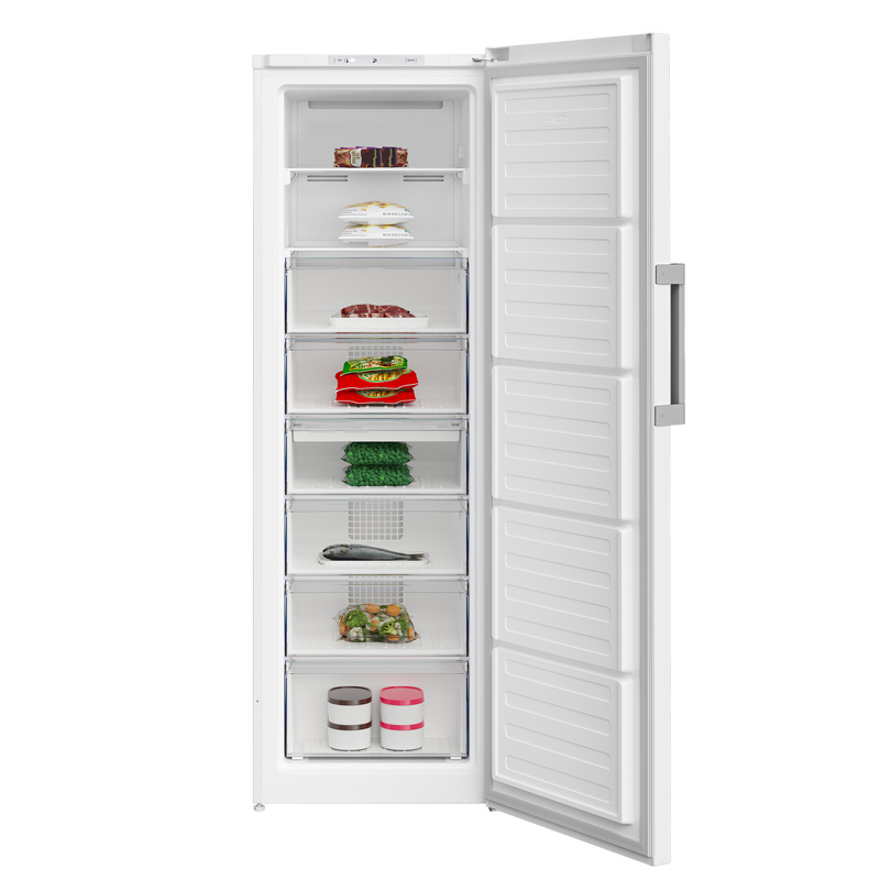 Белая вместительная морозильная камера шириной 60 см и объемом 312 л. Оснащена электронным управлением, технологией NoFrost и функцией быстрого замораживания. Идеально подходит для работы в неотапливаемых помещениях – благодаря эксклюзивной технологии FreezerGuard от Beko морозилка не теряет эффективности при температуре воздуха до -15°С. Имеет перенавешиваемые двери и функцию быстрого замораживания.