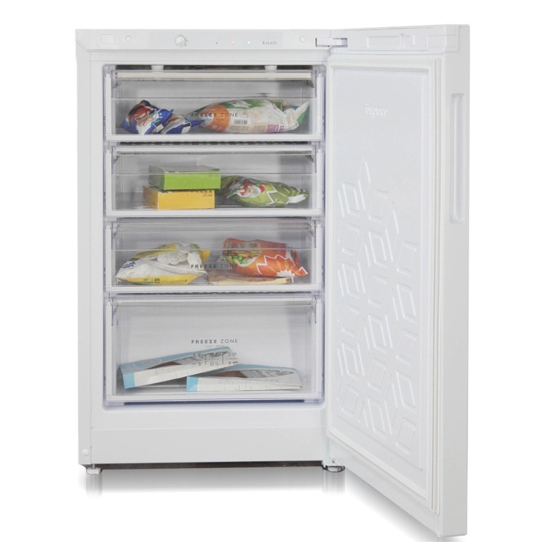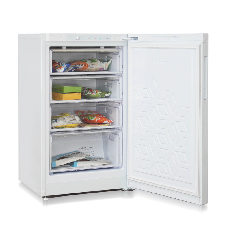 Морозильный шкаф Бирюса 6048 – компактная техника на 100 л с лаконичным белым корпусом. В камере установлено 4 выдвижных ящика, позволяющих хранить рыбу, мясо и прочую заморозку отдельно. С помощью простого поворотного рычага выбирается желаемая температура вплоть до -18°C для замораживания 12 кг мяса в сутки.