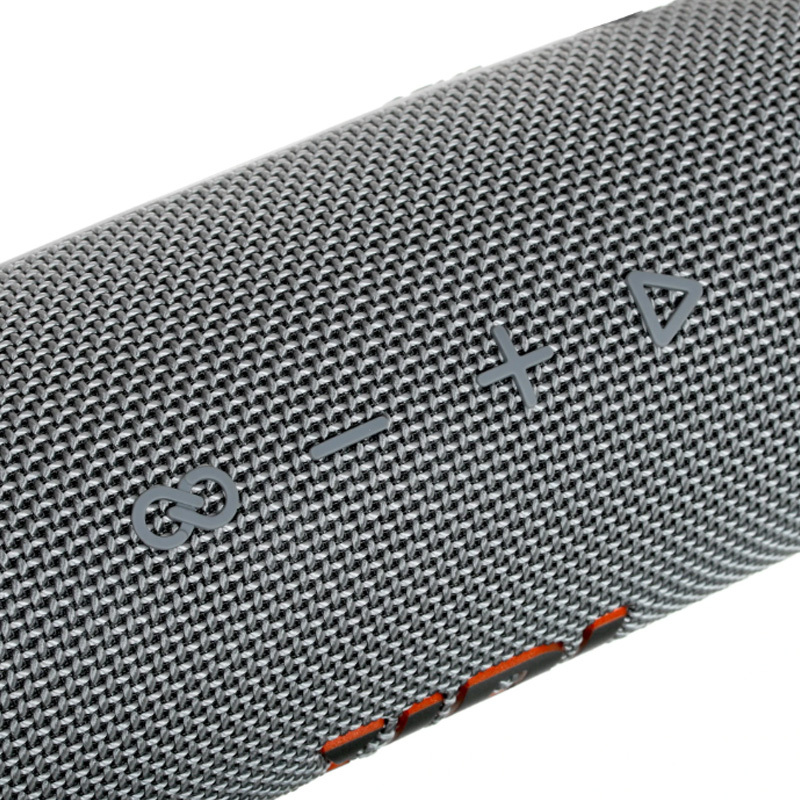Портативная колонка JBL Flip 6 в сером корпусе получила сабвуфер и два динамика, которые выдают мощность 30 Вт. Она довольно громкая и мощная, благодаря своей конструкции распространяет звук на 360 градусов, что делает звучание объемным. Поддерживая диапазон 63-20000 Гц, модель выдерживает баланс между высокими и низкими частотами, позволяя получить объемный и насыщенный бас в сочетании с динамичными инструментальными партиями.