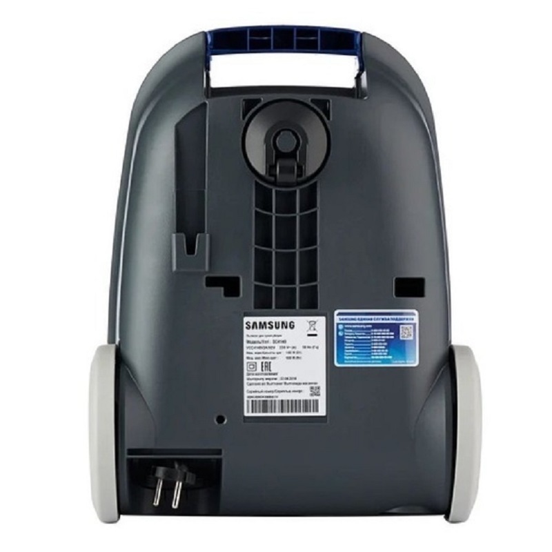 Яркий синий пылесос Samsung SC4140 - эксперт в сухой уборке напольных покрытий любого типа. Имеющий обычную конструкцию прибор позволит вам в два счета справиться даже с самым загрязненным и замусоренным ковром благодаря мощности всасывания 320 Вт. Во время работы устройства его энергопотребление не превысит 1600 Вт. Для сбора всасываемого пылесосом мусора и пыли используется мешок емкостью 3 л, который вам потребуется опустошать не чаще раза в месяц при интенсивном использовании техники. Имеется фильтр тонкой очистки, который не даст всасываемым в пылесос частицам пыли и аллергенам попасть обратно в воздух в помещении.