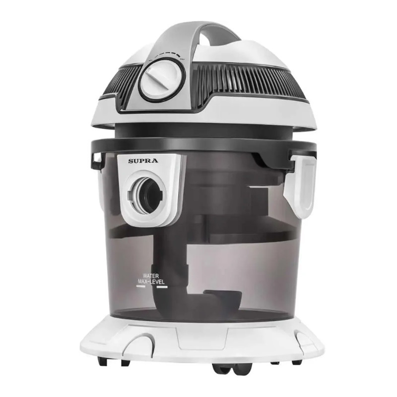 Пылесос Supra VCS-2081 – обладатель циклонного фильтра и пылесборника емкостью на 10 л, так что вам не придется часто очищать пылесборник, и вплоть до полного его заполнения мощность всасывания будет на высоте – 380 Вт на максимуме. При необходимости ее можно менять с помощью регулятора на корпусе. Труба всасывания – составная, радиус действия прибора составит 6.5 м. Поскольку пылесос предназначен и для сухой, и для влажной уборки, в нем предусмотрена функция распыления, а также идет специальная насадка для влажной уборки. Емкость бака для воды или моющего средства составляет 1.6 л. Также в комплекте к Supra VCS-2081 идут насадка для сухой уборки и щелевая для удаления грязи из труднодоступных мест.