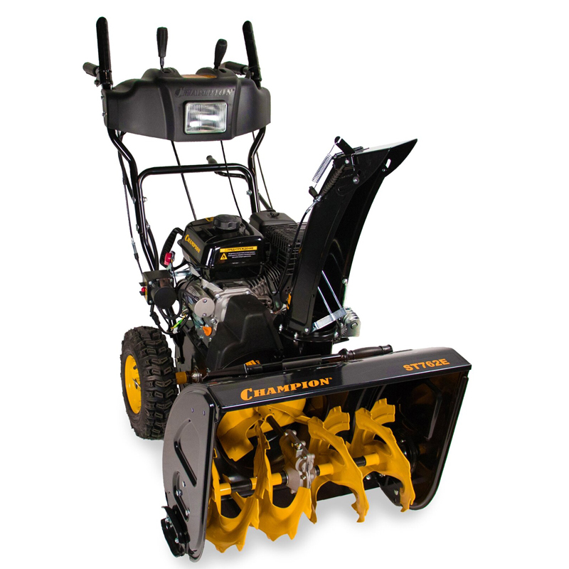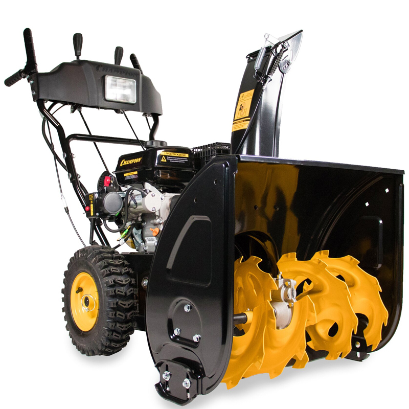 Снегоуборщик бензиновый Champion ST762E - хорошо подходит для уборки снега во дворе, просторной открытой веранде или на площадке перед гаражом. Прочный шнек довольно легко справится даже с плотным слежавшимся снегом, а зазубрины без проблем размельчают ледяную корку.
