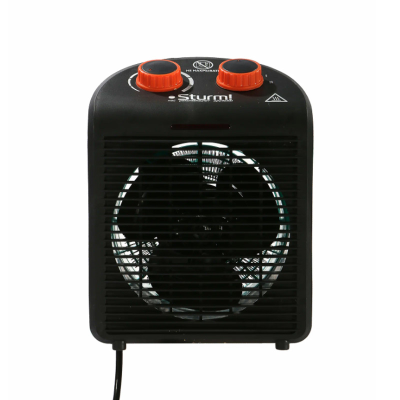 Sturm FH2001 – мобильный тепловентилятор мощностью 2 кВт –предназначен для вспомогательного обогрева жилых помещений площадью до 20 м2. Модель выполнена в современном, интерьерном дизайне и отличается минимальными габаритами, и весом. Обогреватель оснащен надежным и долговечным спиральным нагревательным элементом, обеспечивающим быстрый и равномерный прогрев помещения. Для того, чтобы обеспечить высокую производительность воздушного потока, проходящего через нагревательный элемент и ускорить циркуляцию нагретого воздуха, устройство имеет встроенный мощный вентилятор. Управление обогревателем осуществляется с помощью пары регуляторов, размещенных на верхней панели. С помощью первого регулятора пользователь выбирает один из трех режимов работы: вентиляция без нагрева / теплый обдув / горячий обдув. Второй регулятор отвечает за настройку термостата. Для визуального контроля включенного устройства, предусмотрен отдельный индикатор питания. Безопасность использования обеспечивают встроенная термозащита и корпус из жаропрочного пластика.