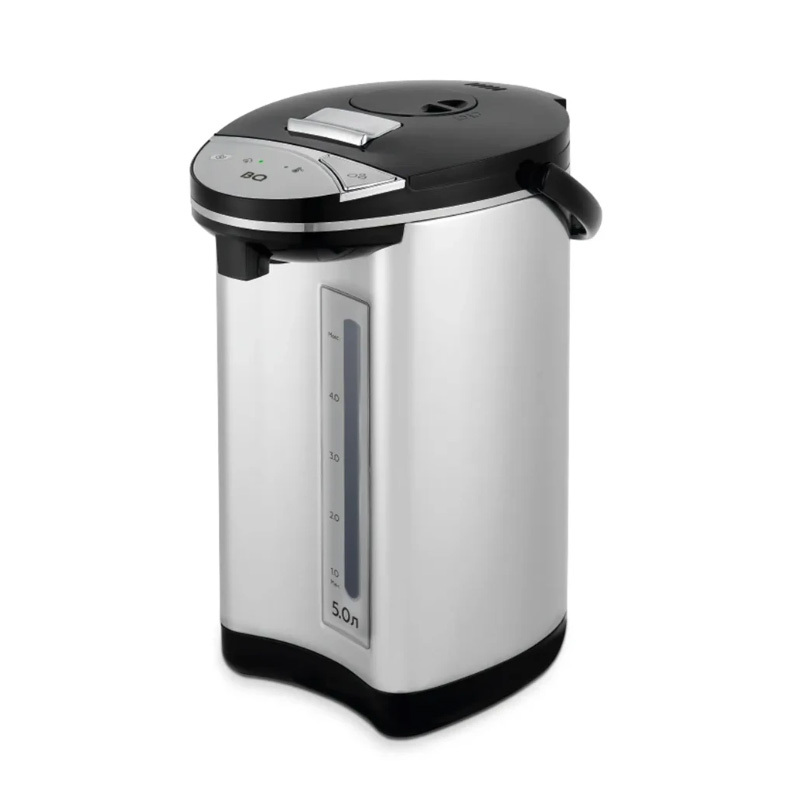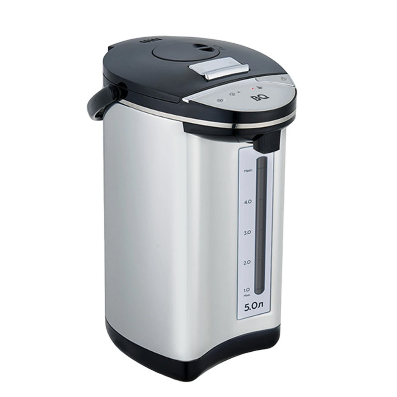 Термопот BQ TP500 с мощностью 750 Вт совмещает функции чайника и термоса. Он способен кипятить воду и поддерживать ее высокую температуру длительное время. Объем резервуара для воды равен 5 л. Вода подается при помощи нажатия чашкой на клапан, с электрической и ручной помпы.